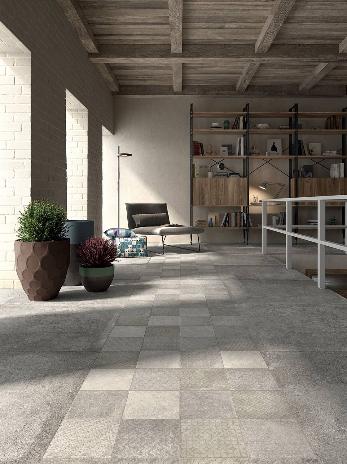 A multifaceted and harmonious set of surfaces, marked by the traces of the passage of time.