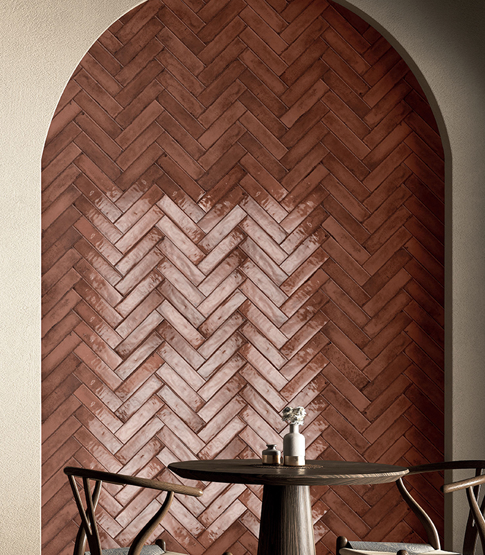 Vibrant and bright, Workshop embodies the free spirit of Gen Z. Its small bricks and the brilliance of the surfaces interpret ceramics as an expressive material, with slight irregularities that evoke artisanal craftsmanship.
