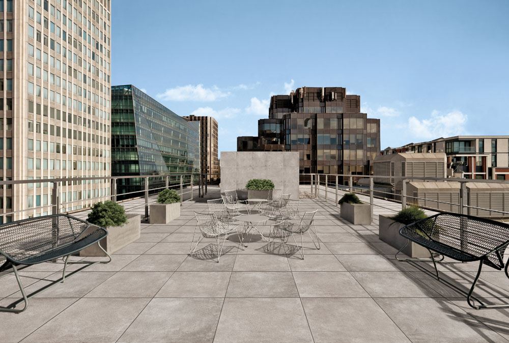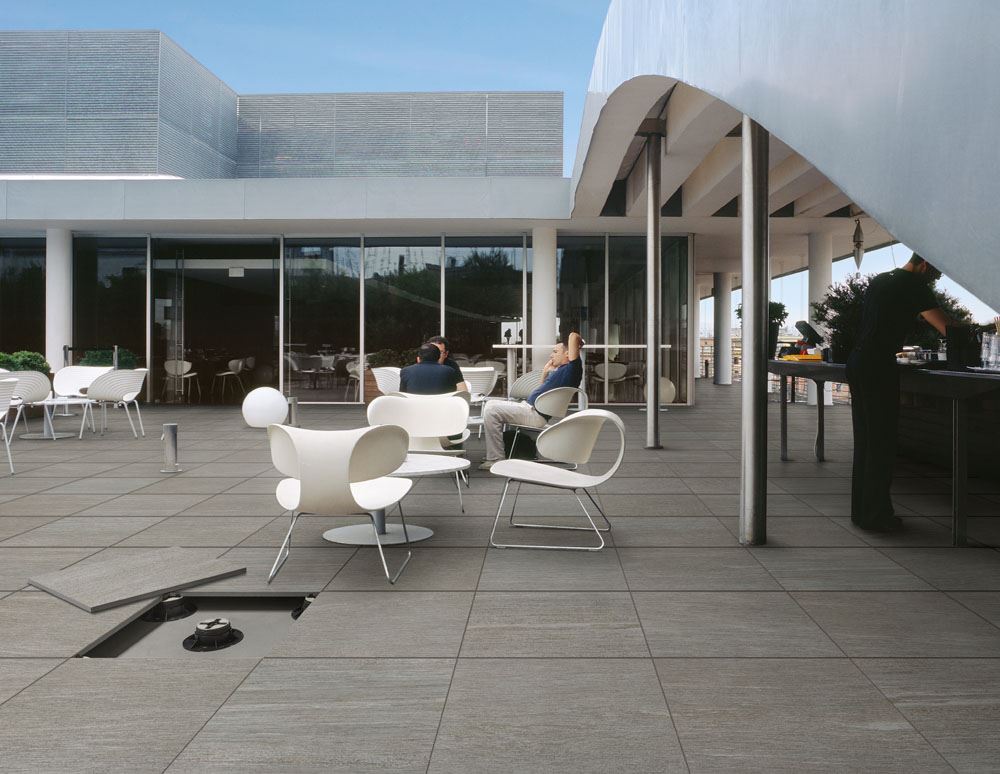 20 mm thick tiles are particularly suitable for outdoor floorings in urban areas, shopping malls, squares, pavements, walkways, parking lots, public green areas and meeting points. 20 mm thick Panaria porcelain stoneware floorings are a functional and safe solution also for redevelopment works in urban and city centres with important architectural buildings.