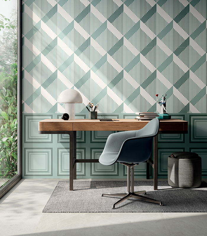 A contemporary interior design that adapts well to a smart working station requires solutions that ensure maximum aesthetic impact with minimal structural invasiveness. Glam, redefining the concept of vertical cladding through an innovation that combines lightness and resistance, is the perfect collection for these needs.